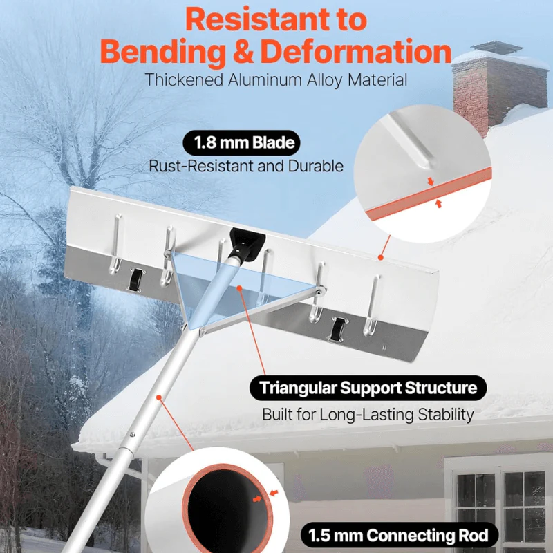 The 26-inch wide blade clears more snow per pass—just 8–10 passes for a full roof—Plus-size designs genuinely reduce labor, boost efficiency, and minimize strain injuries.