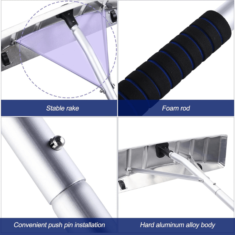 • 26 inches Snow Roof Rake & Rake Extensions with Wheels