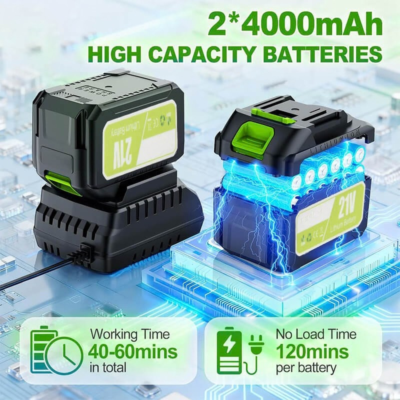 ✅ 2x4.0Ah Batteries Give 1+ Hour Runtime